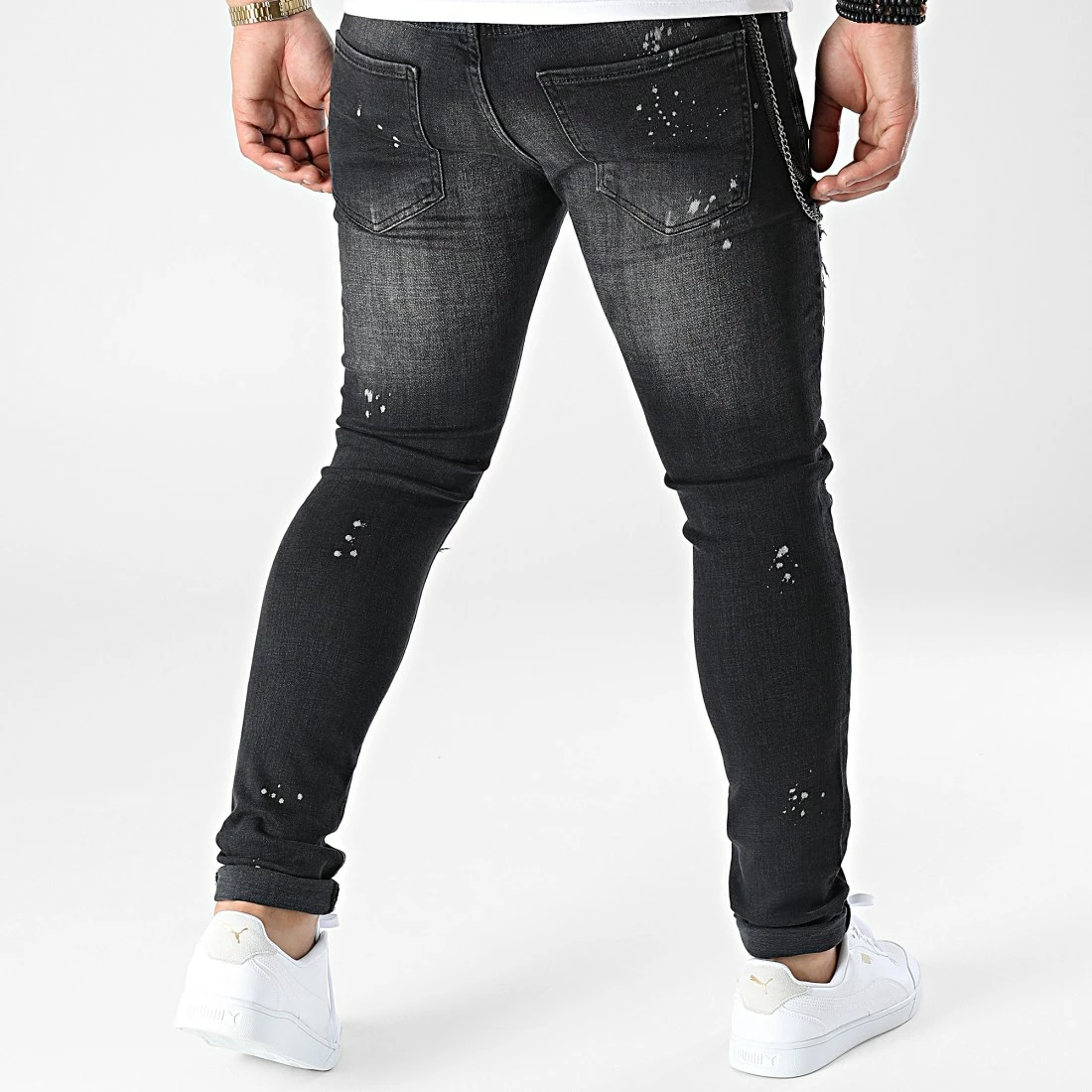 • Jean skinny finition usée, tachée et délavée avec rapiéçages