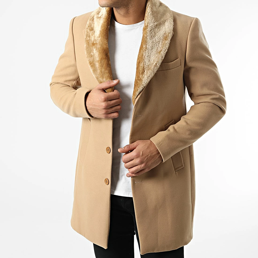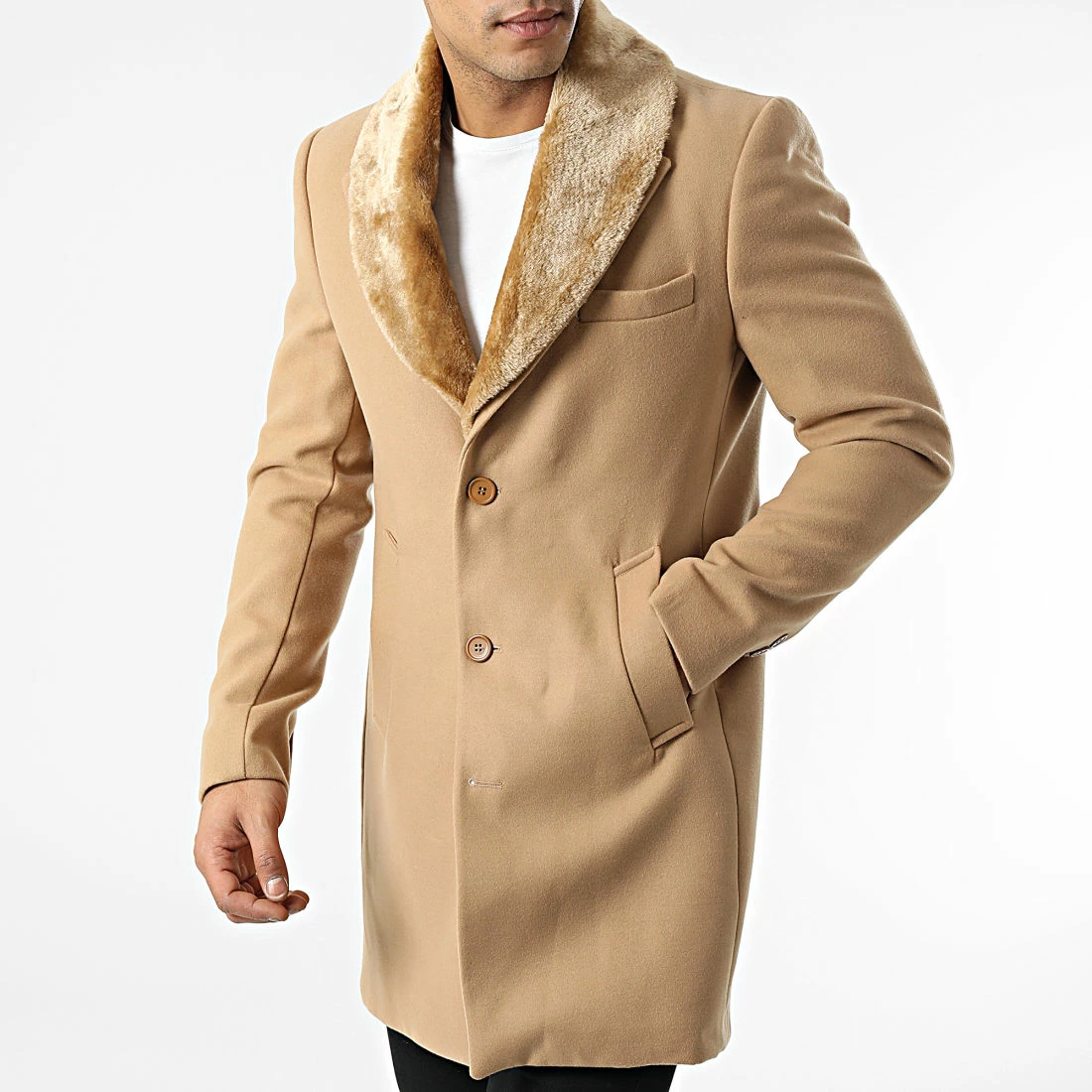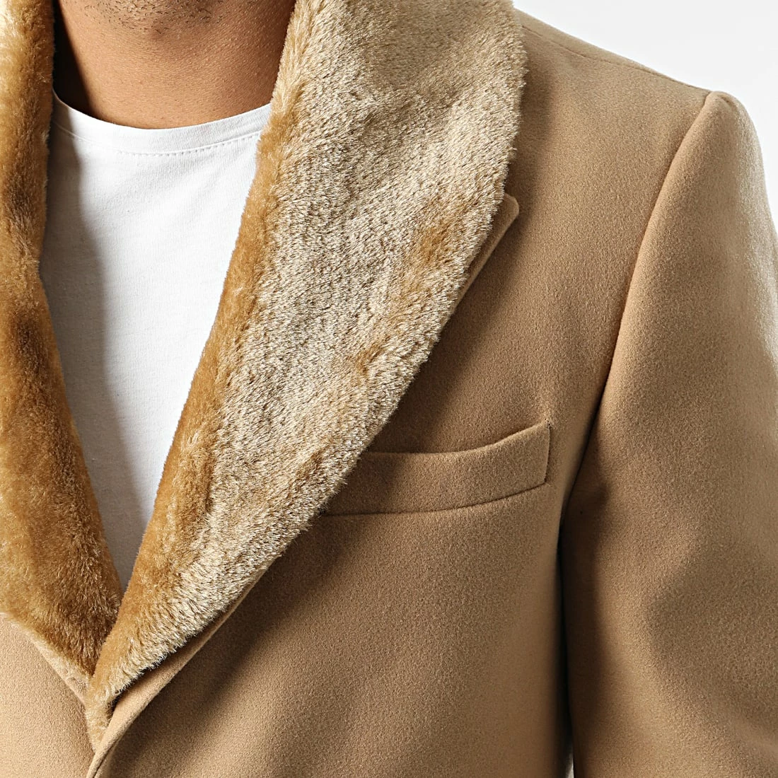 • Manteau élégant avec col en fourrure synthétique amovible