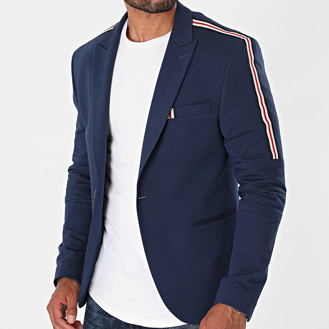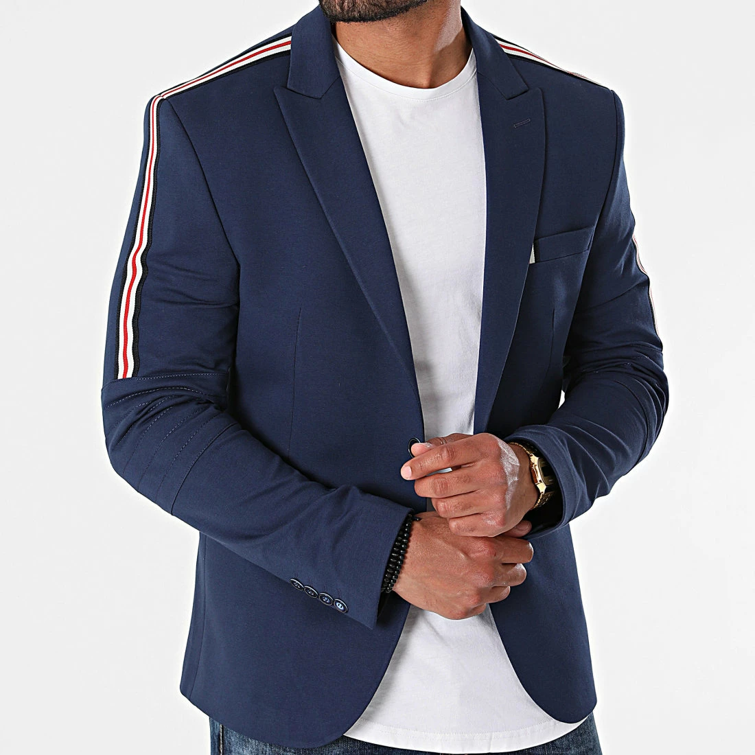 • Veste blazer brodée bandes sur les manches