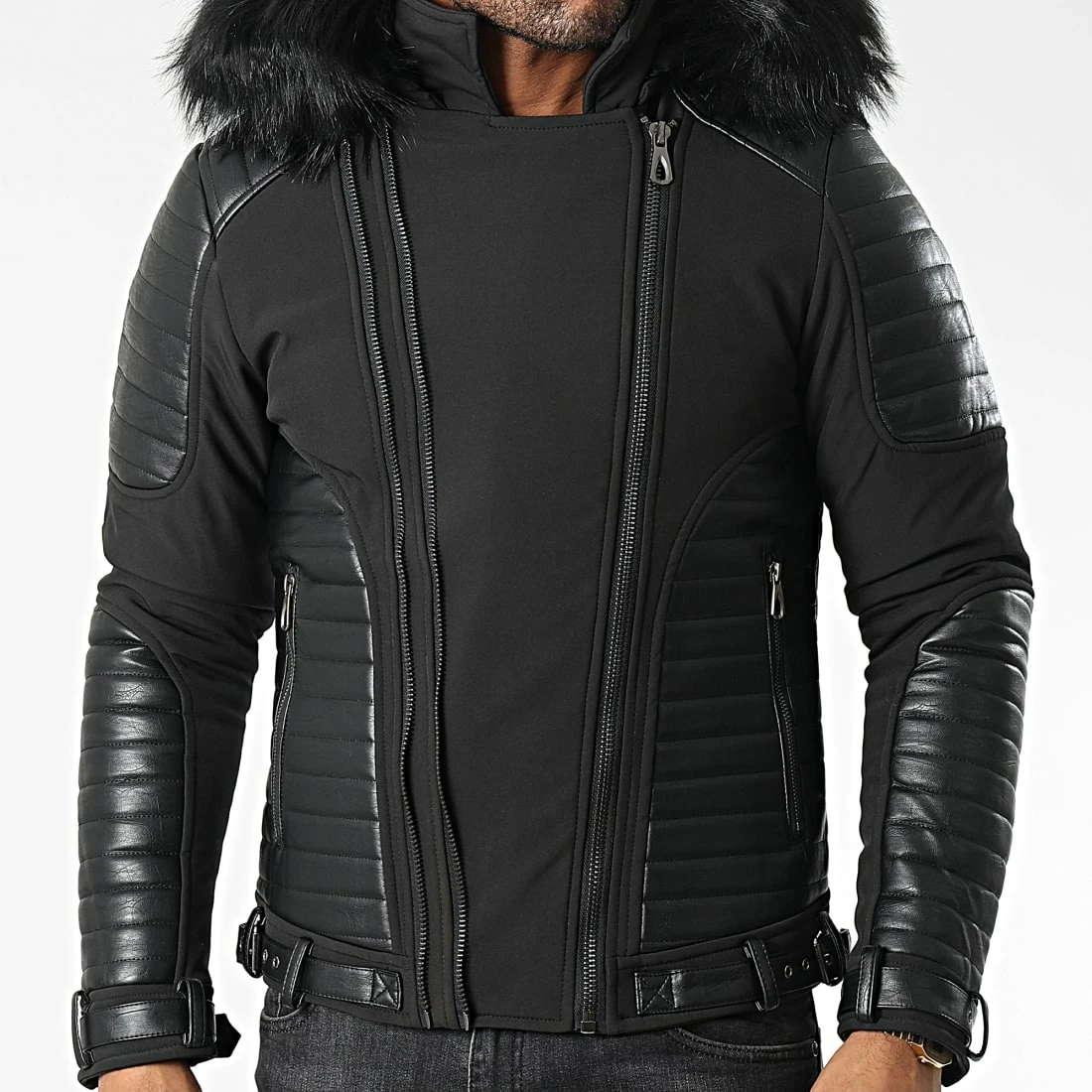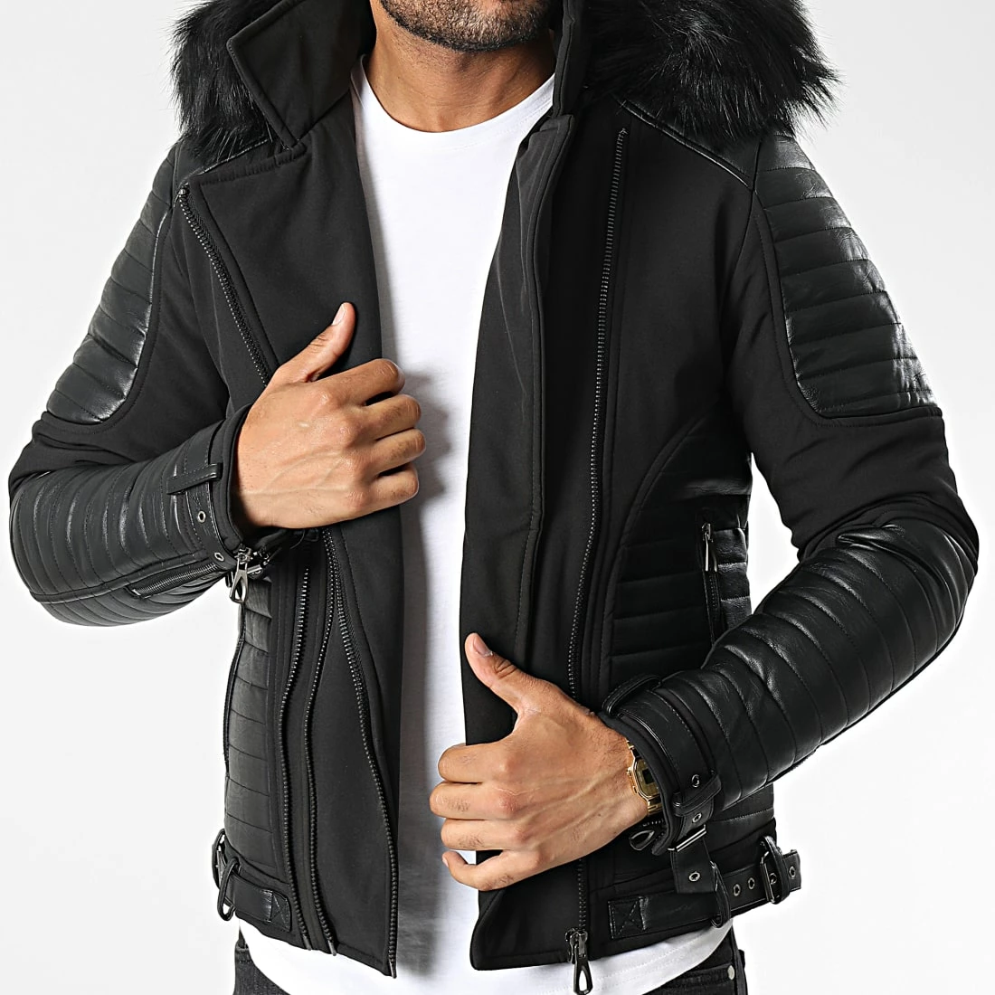 • Veste zippée capuche avec fourrure synthétique amovible