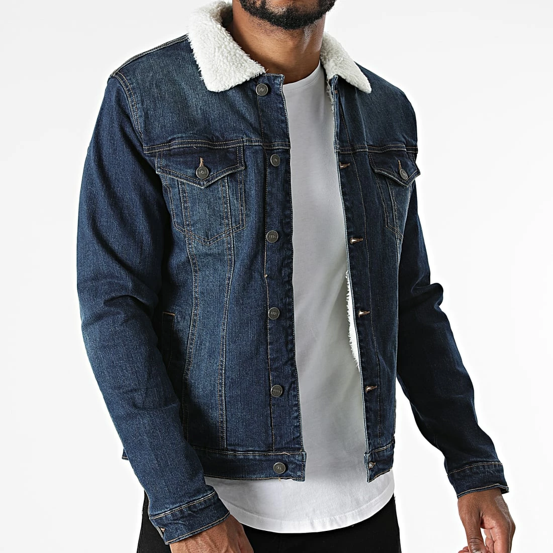 • Veste en jean délavée avec col et doublure en fourrure synthétique