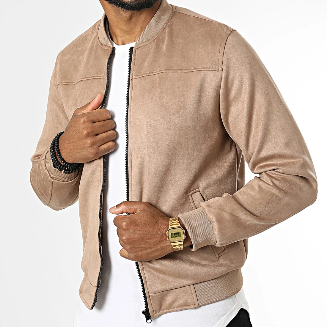 Sortie 🔥 Veste Suedine MKTS04 Beige Foncé de Mackten ❤️